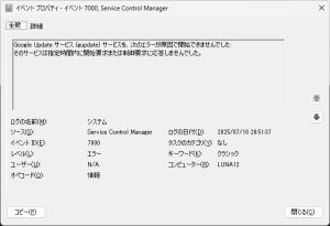 Windows11 で[Google Update サービス (gupdate) サービスを、次のエラーが原因で開始できませんでした]イベント ...