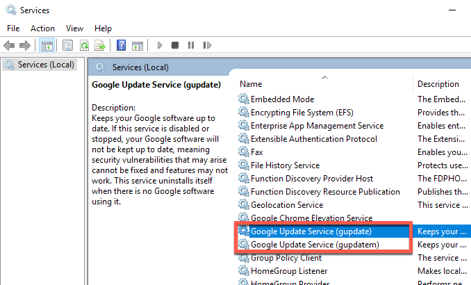 WindowsServer2019でGoogle Update サービス(gupdate)を完全停止 - システム備忘録