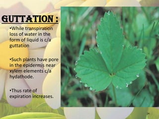 Guttation is a process of water loss in a Liquid form class 11 biology CBSE