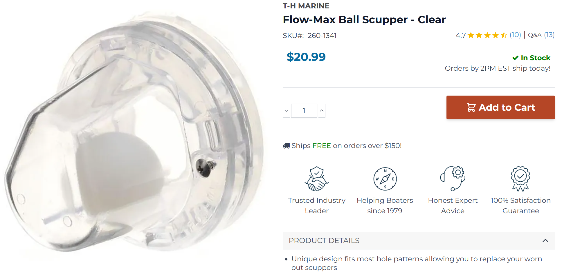 PVC Seal Scupper Seachoice 18281 Self Bailing Scupper, Large - Clear ...