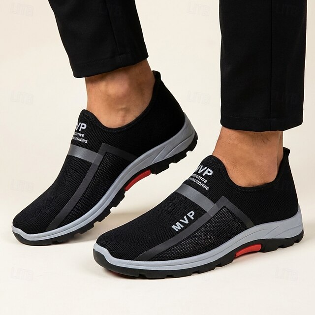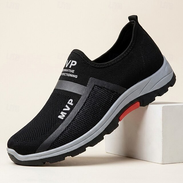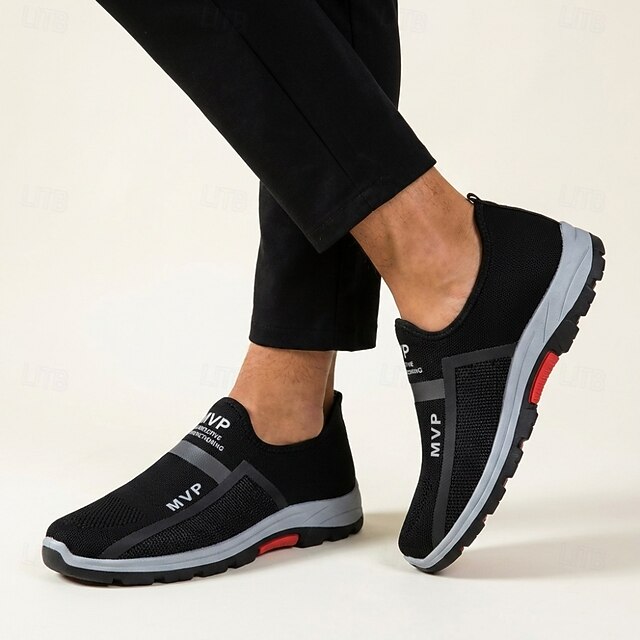 Men's Black Slip-On Sport Sneakers Breathable Mesh Lightweight Comfort ...