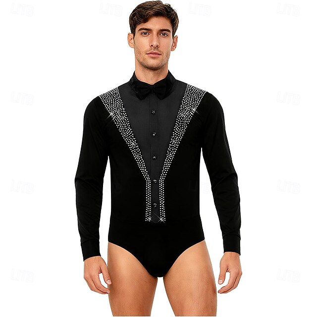 Men's Latin Ballroom Dance Shirt Bodysuit - Rhinestone Sparkly Leotard ...