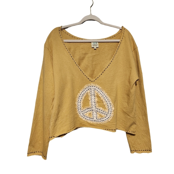 Jaded Gypsy | Tops | Jaded Gypsy Yellow Vneck Peace Sign Boho Patch ...