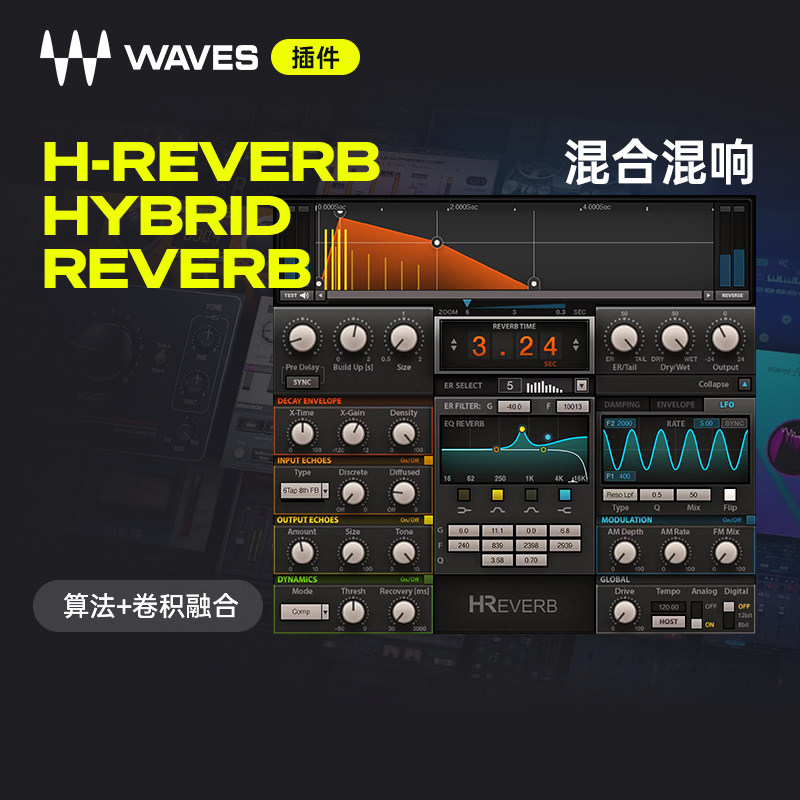 【Waves插件】H-Reverb Hybrid多功能人声乐器混响效果器混音插件