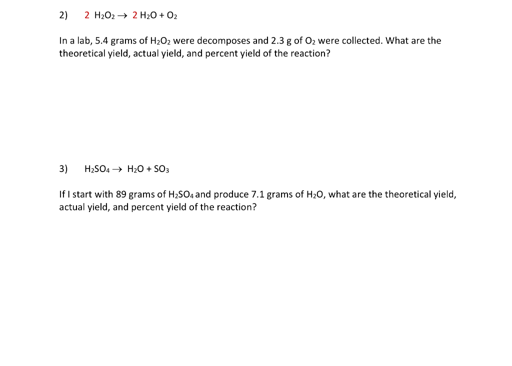 Solved 2) 2 H2O2 → 2 H2O + O2 In a lab, 5.4 grams of H2O2 | Chegg.com