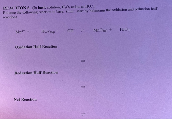 Solved REACTION 6 (In basic solution, H2O2 exists as HO2.) | Chegg.com
