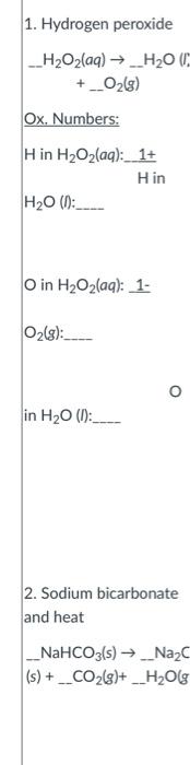 Solved 1. Hydrogen peroxide H2O2(aq)→…H2O(I4+O2( g) Ox. | Chegg.com
