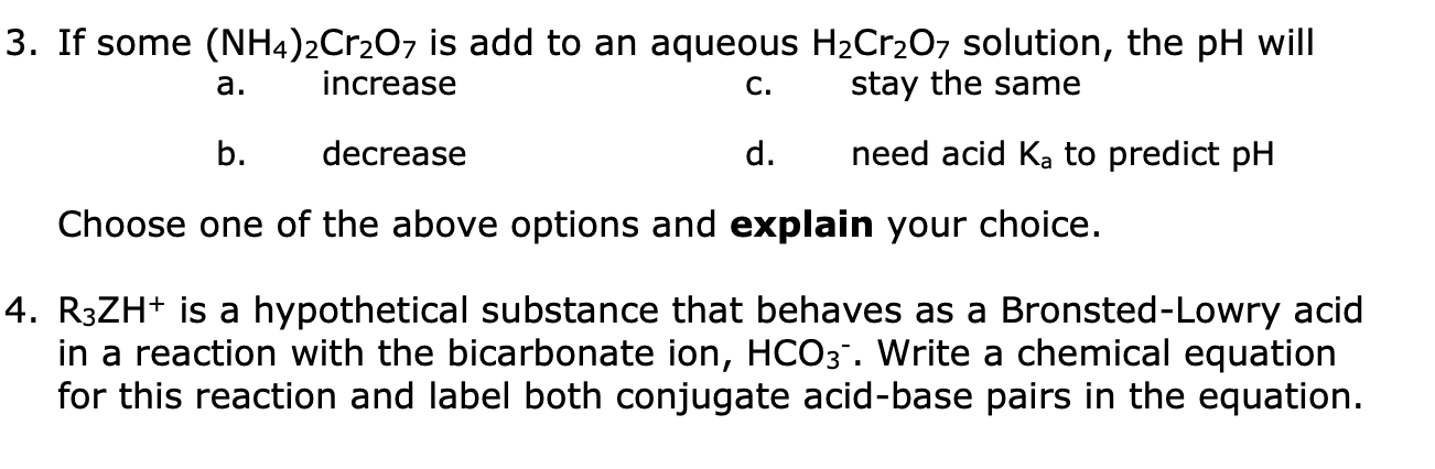 Solved 3. If some (NH4)2Cr2O7 is add to an aqueous H2Cr2O7 | Chegg.com