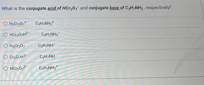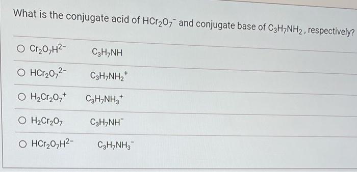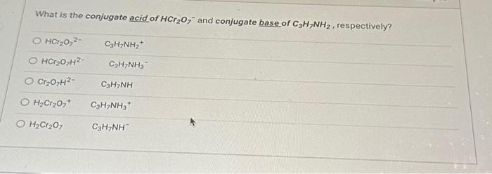 Solved What is the conjugate acid of HCr2O7−and conjugate | Chegg.com