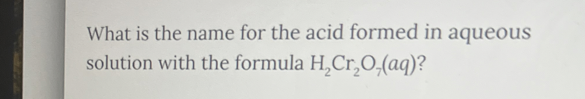 Solved Part C H2Cr2O7(aq) Spell out the full name of the | Chegg.com