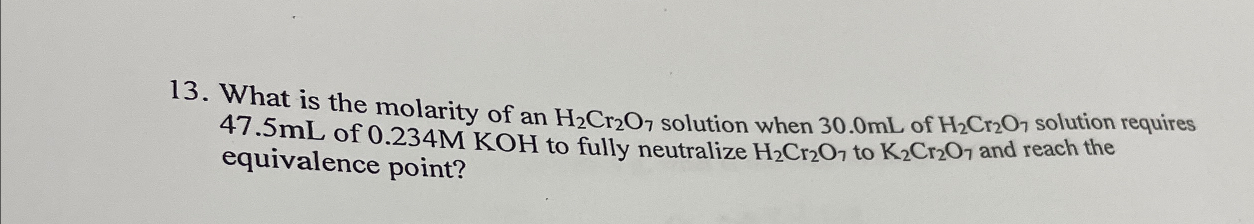 Solved What is the molarity of an H2Cr2O7 solution when 30.0 | Chegg.com