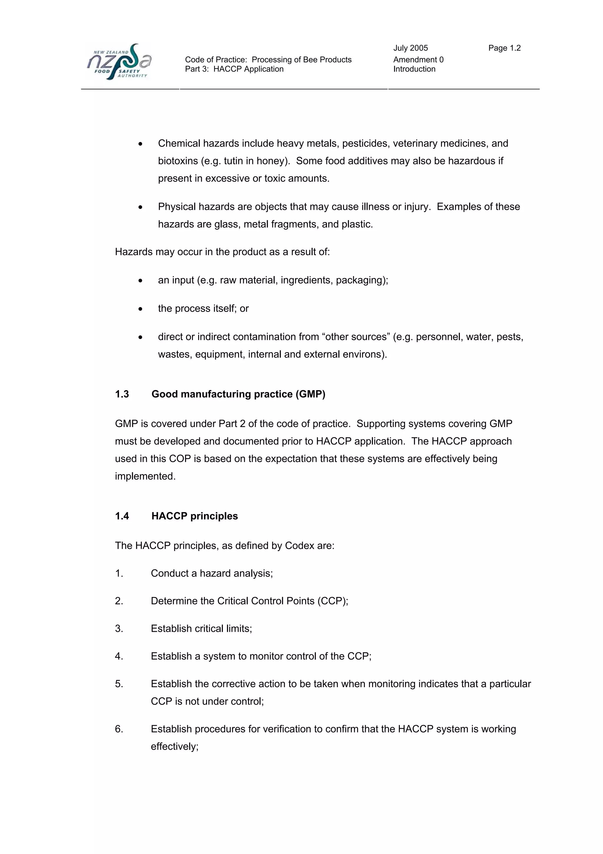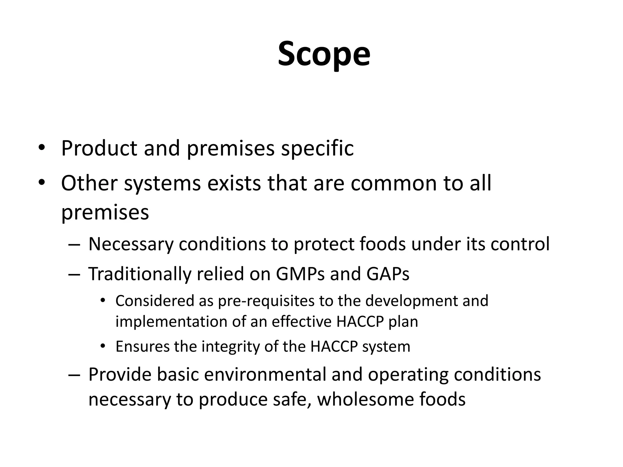 SCOPES OF GOOD MANUFACTURING PRACTICES. (GMP), HAZARD ANALYSIS CRITICAL ...