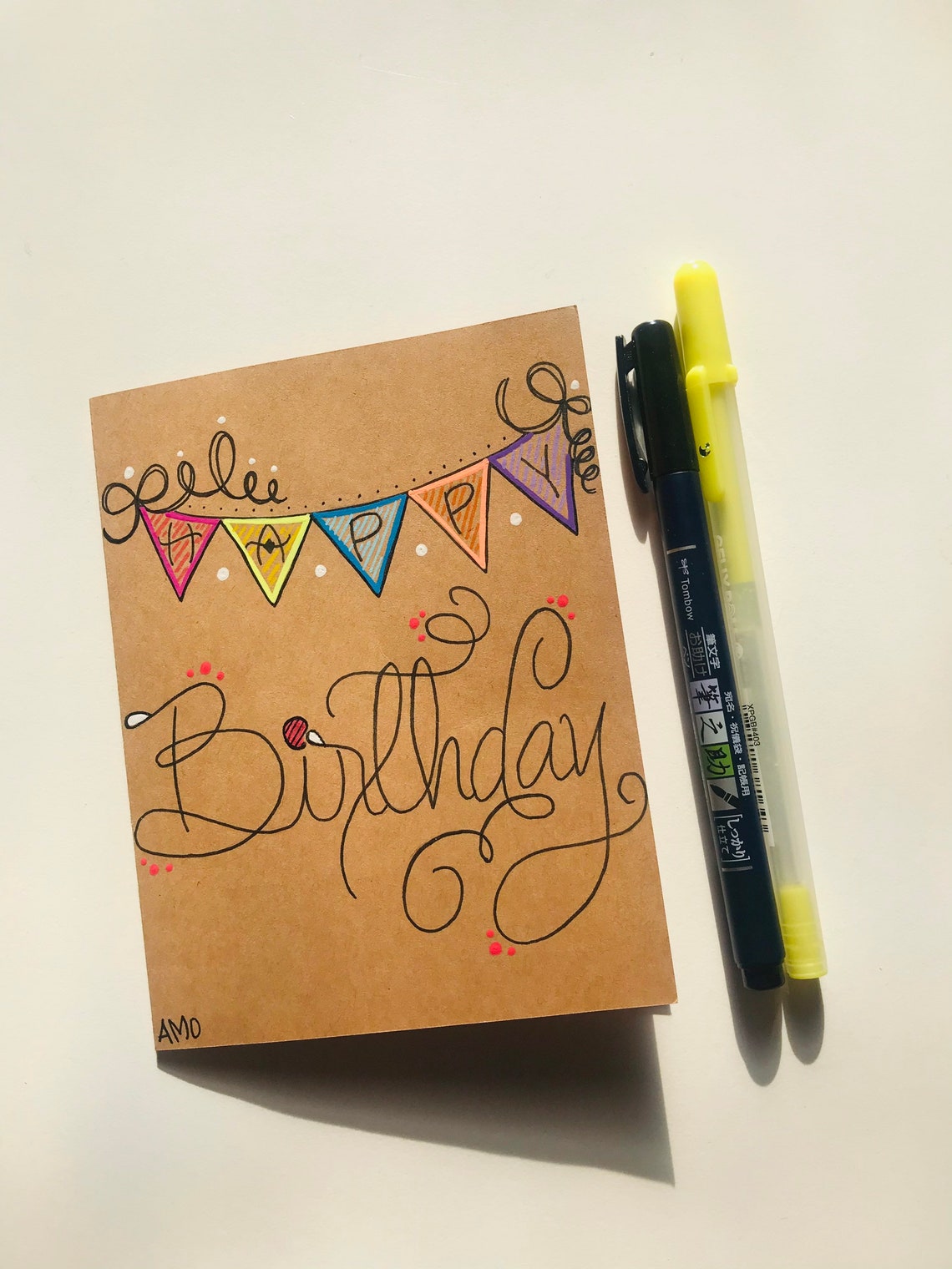 Happy Birthday Card Handwritten Handmade Custom Lettering - Etsy
