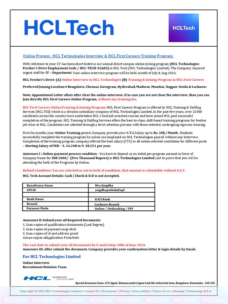 Online Process HCL Technologies Interview & HCL First Careers Training ...