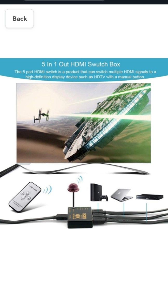 HDMI Switch 5 in 1 Out, 5 Port HDMI Switcher Selector Box with IR ...