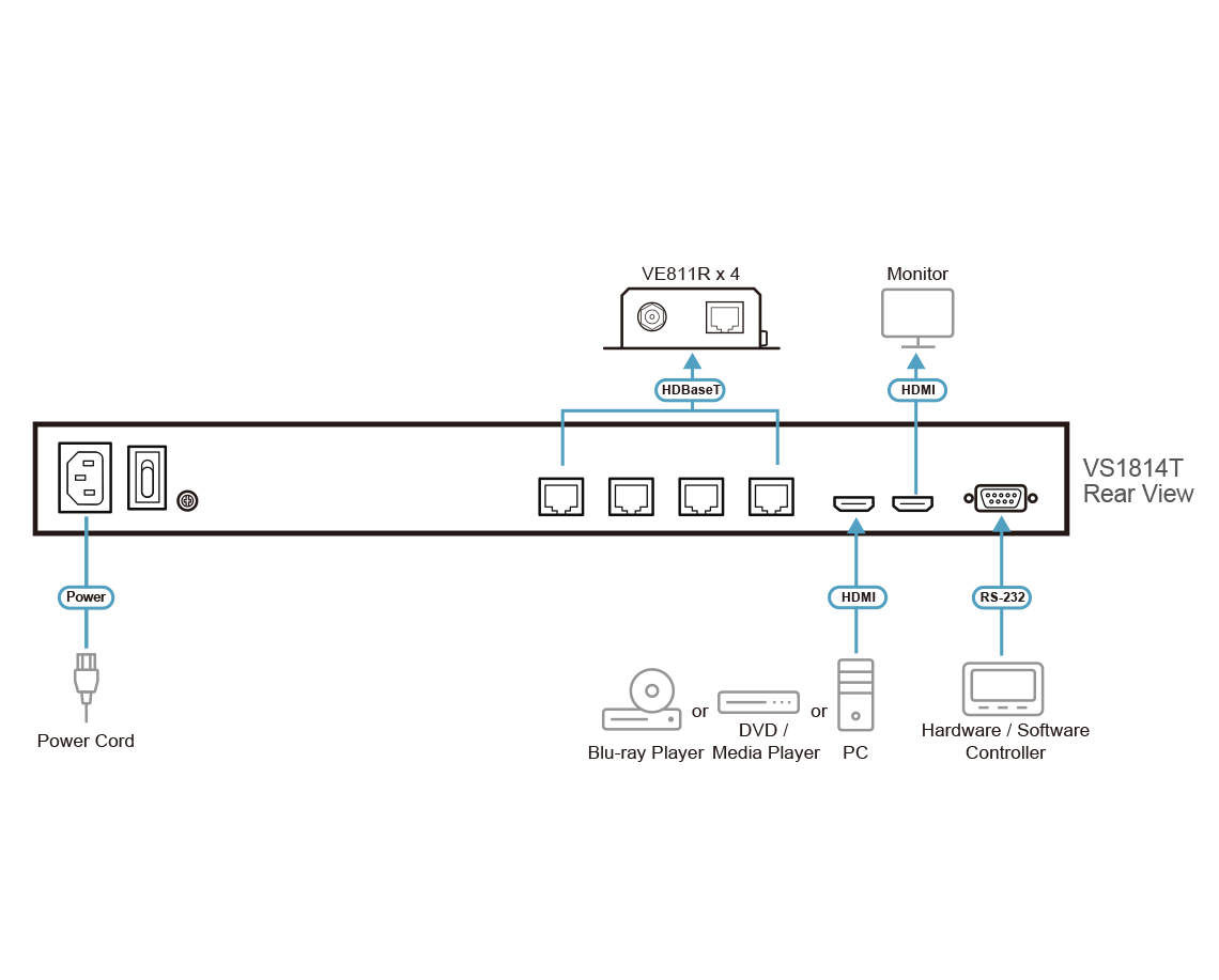 4-Port HDMI HDBaseT Splitter (HDBaseT Class A) - VS1814T, ATEN Video ...