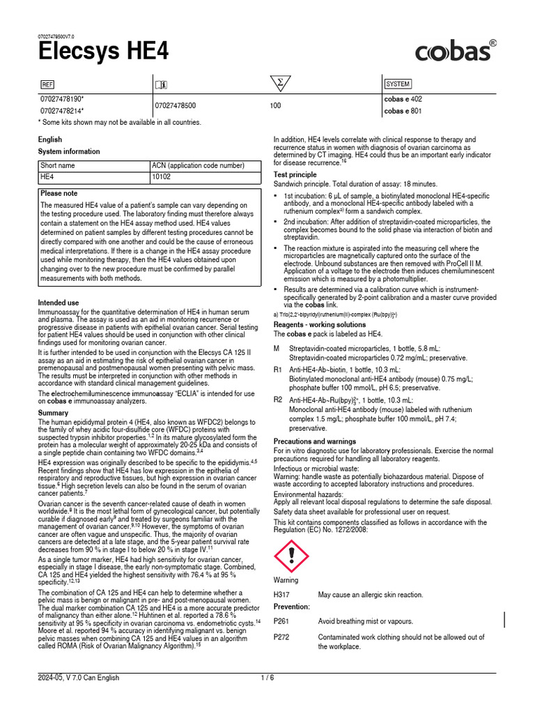 Elecsys HE4 Immunoassay Overview | PDF | Detection Limit | Ovarian Cancer