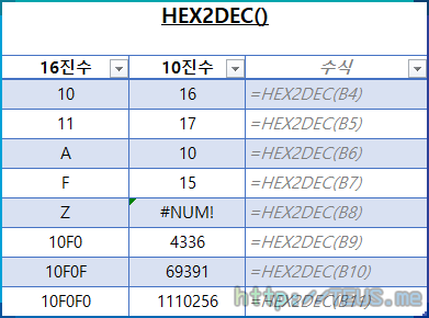 69. 후니와 엑셀 함수 - 16진수를 10진수로 변환하기 [HEX2DEC] : 네이버 블로그