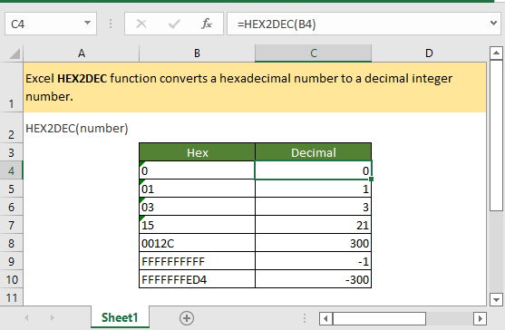 How to use the HEX2DEC Function | Encyclopedia-Excel