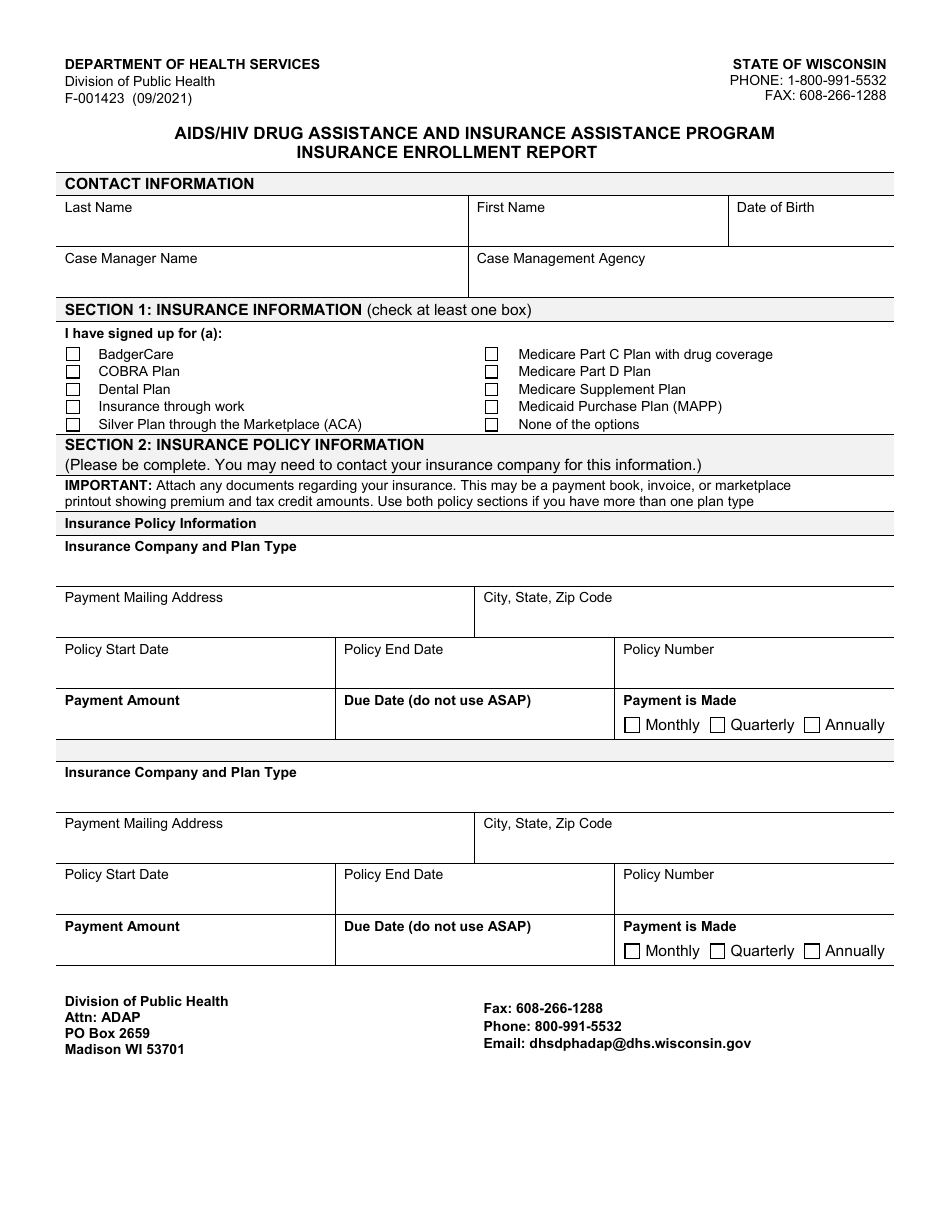 Fillable Form F-44614a - Aids Drug Assistance Program And Insurance ...