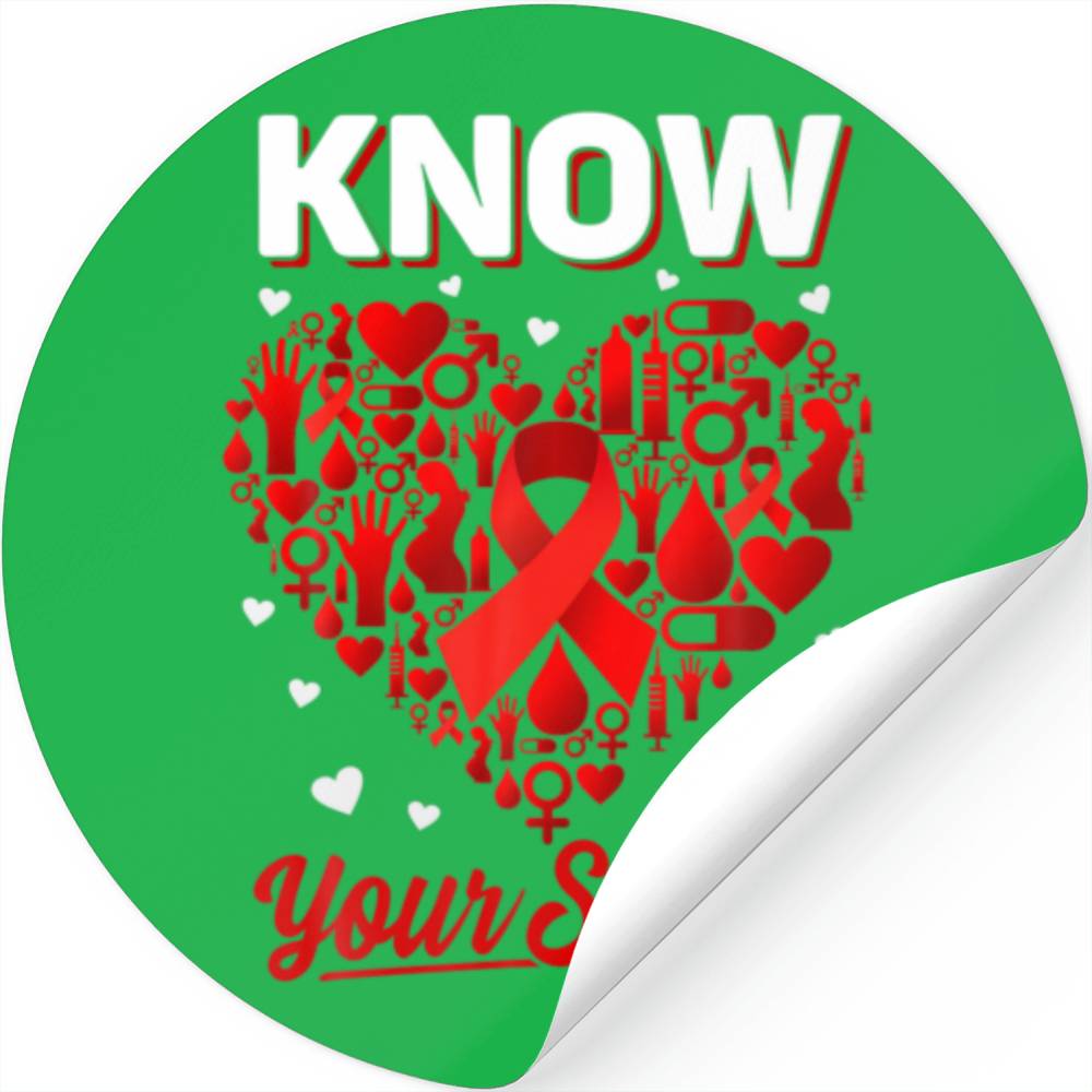 Know Your Status HIV AIDS Awareness Red Ribbon Hea Stickers