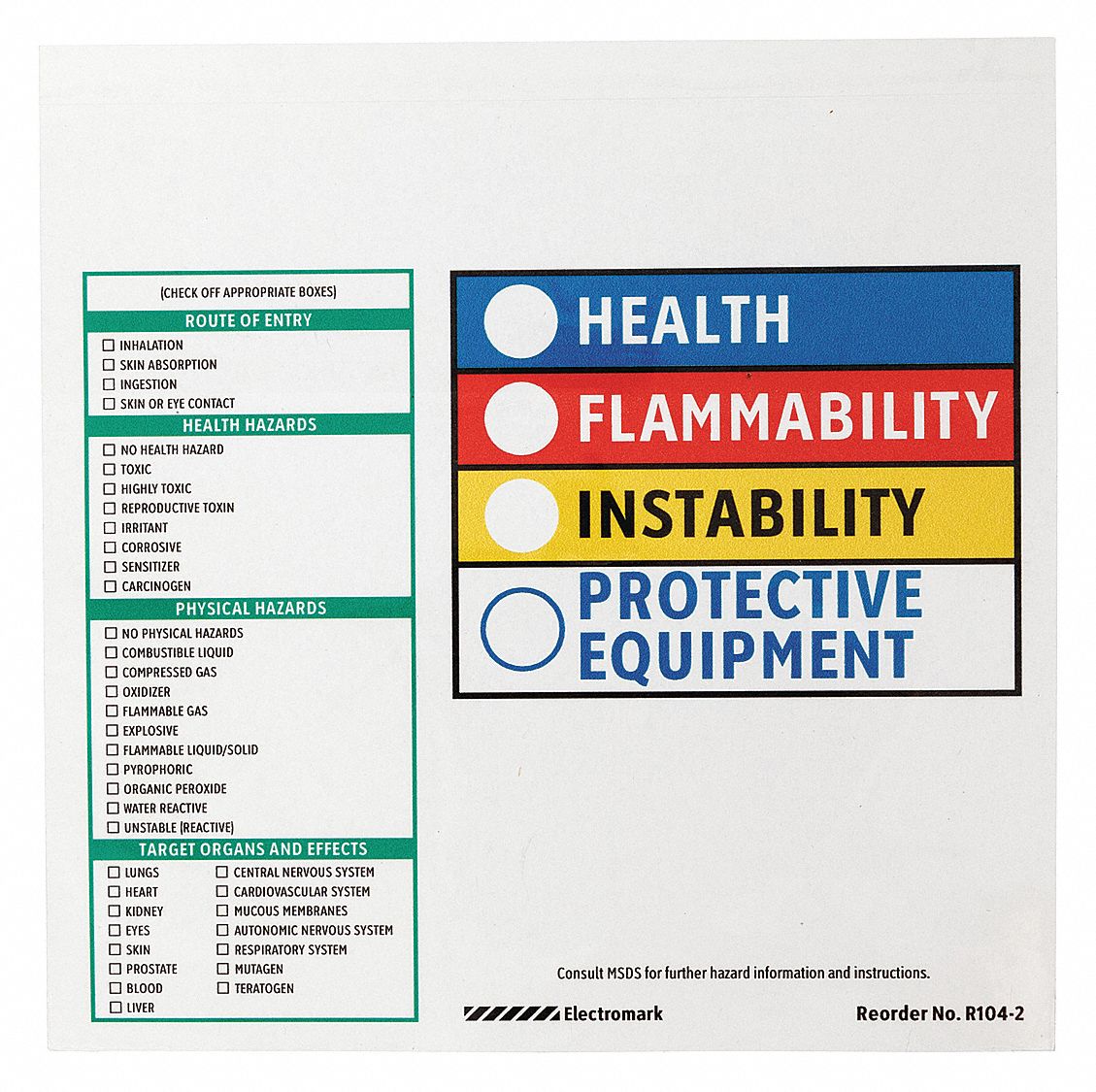 HMIG Labels w/ PPE Check Boxes & Safety Definitions