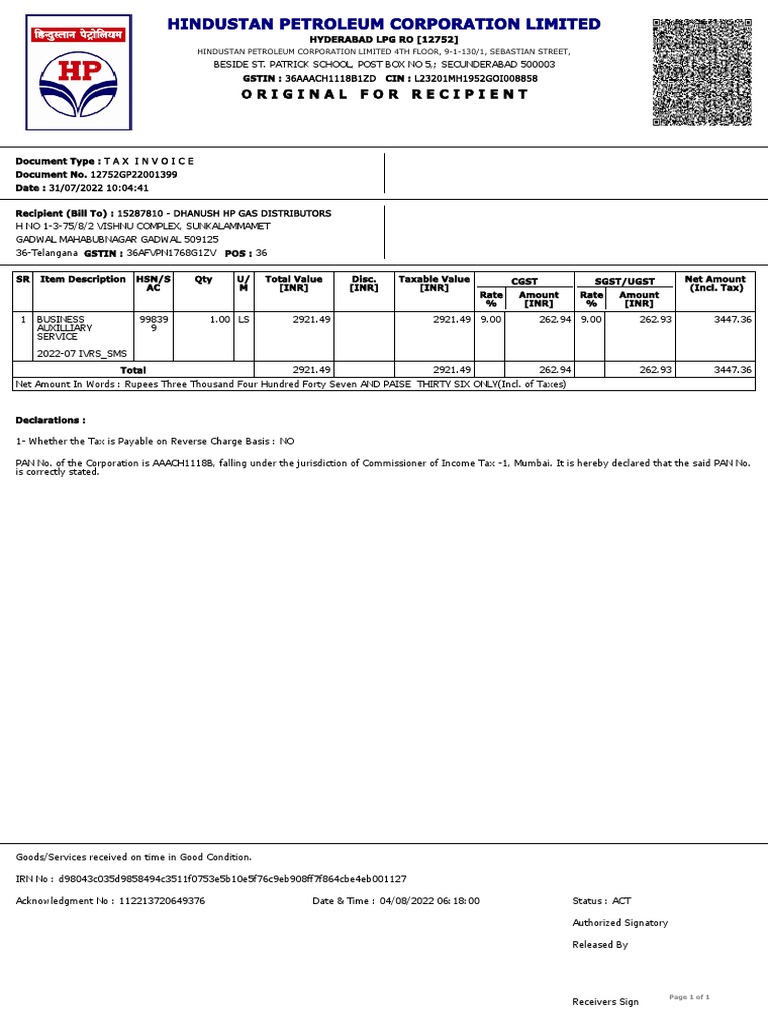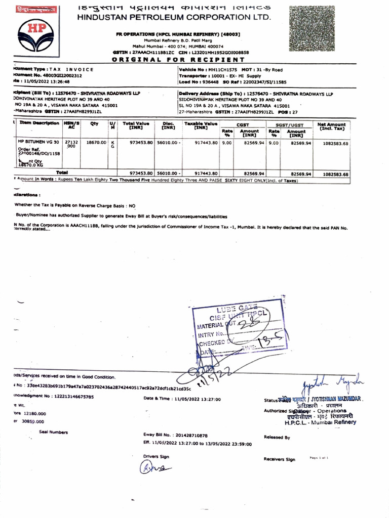 HP Bitumen VG 90 Tax Invoice Details | PDF | Taxation | Public Finance