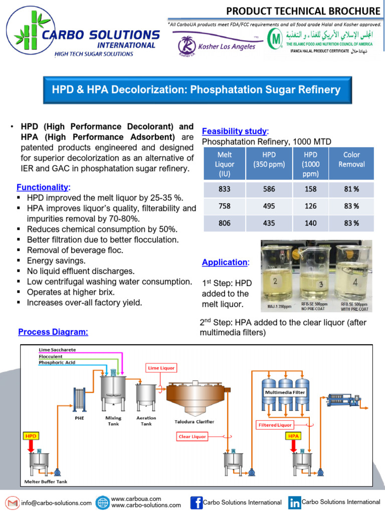 HPD HPA Decolorization Phosphatation Sugar Refinery | PDF