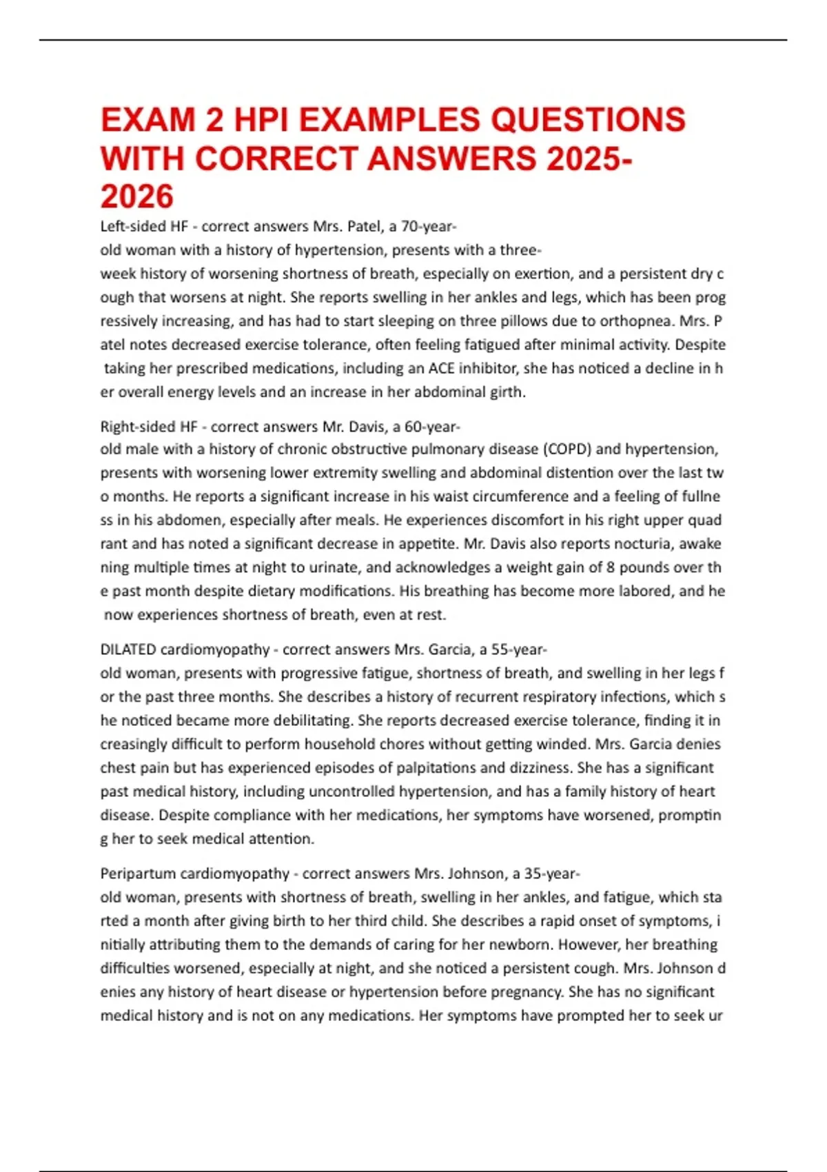 EXAM 2 HPI EXAMPLES QUESTIONS WITH CORRECT ANSWERS 2025 - EENT - Stuvia US