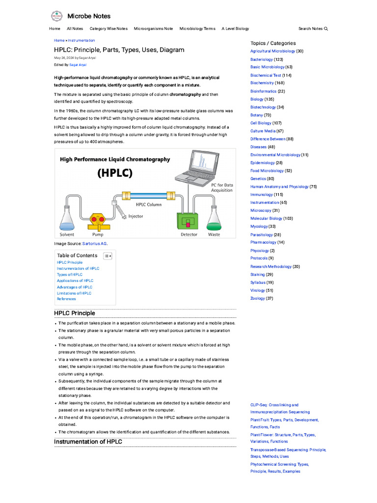 HPLC - Principle, Instrumentation, Types, Uses, Diagram - Biology Notes ...