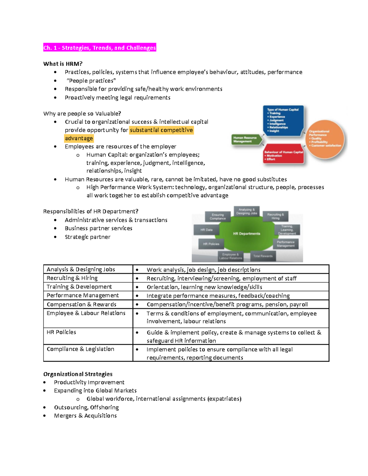 HR Notes - Ch. 1 - Strategies, Trends, and Challenges What is HRM ...