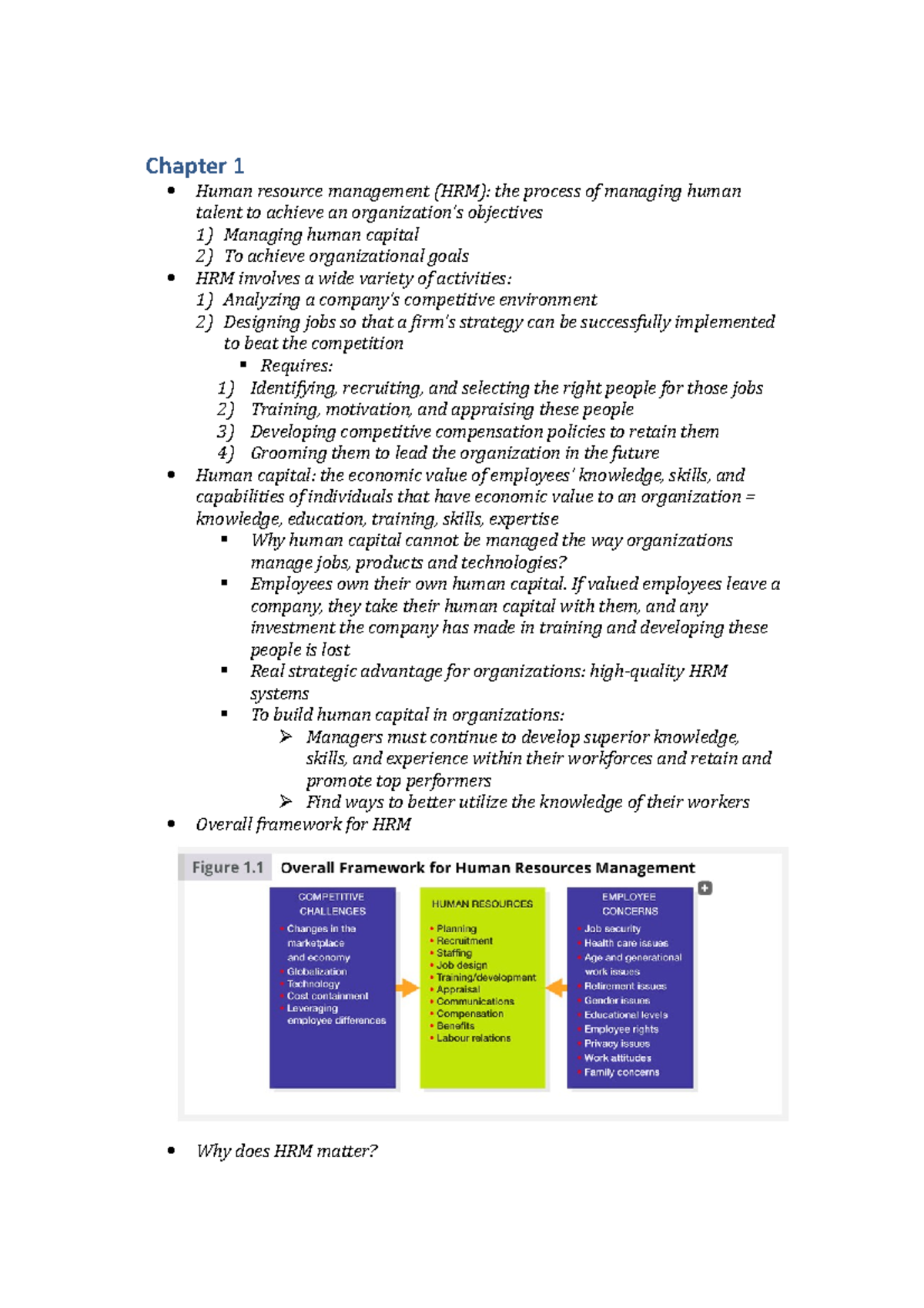 HR Notes - Chapter 1 Human resource management (HRM): the process of ...