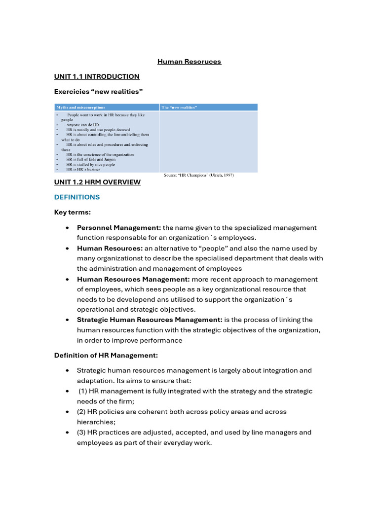 Human Resources - extensive HR notes- your welcome - HUMAN RESOURCES ...