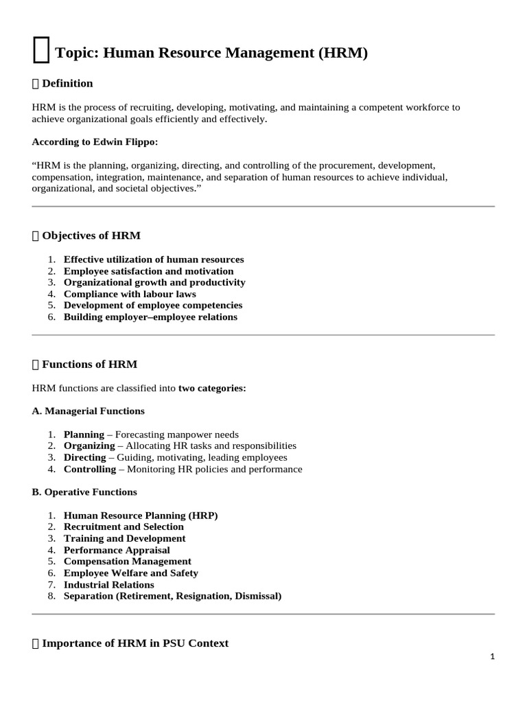 Human Resource Management Notes | PDF | Human Resource Management ...
