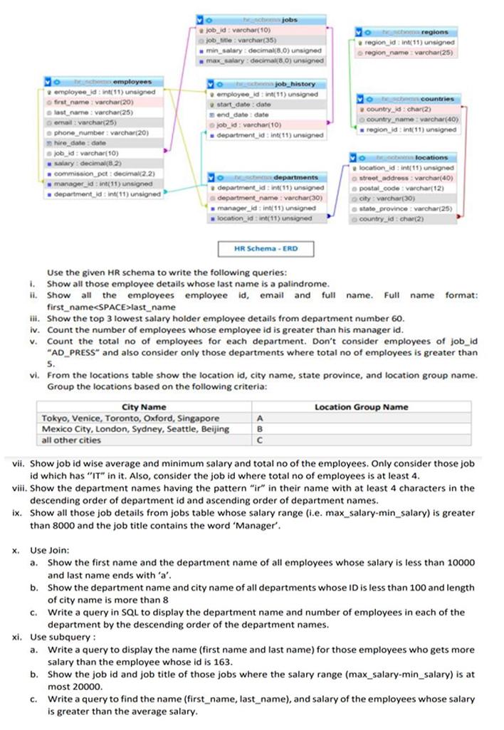 sql queries Hr Schema Questions 10 g | Database Schema | Salary