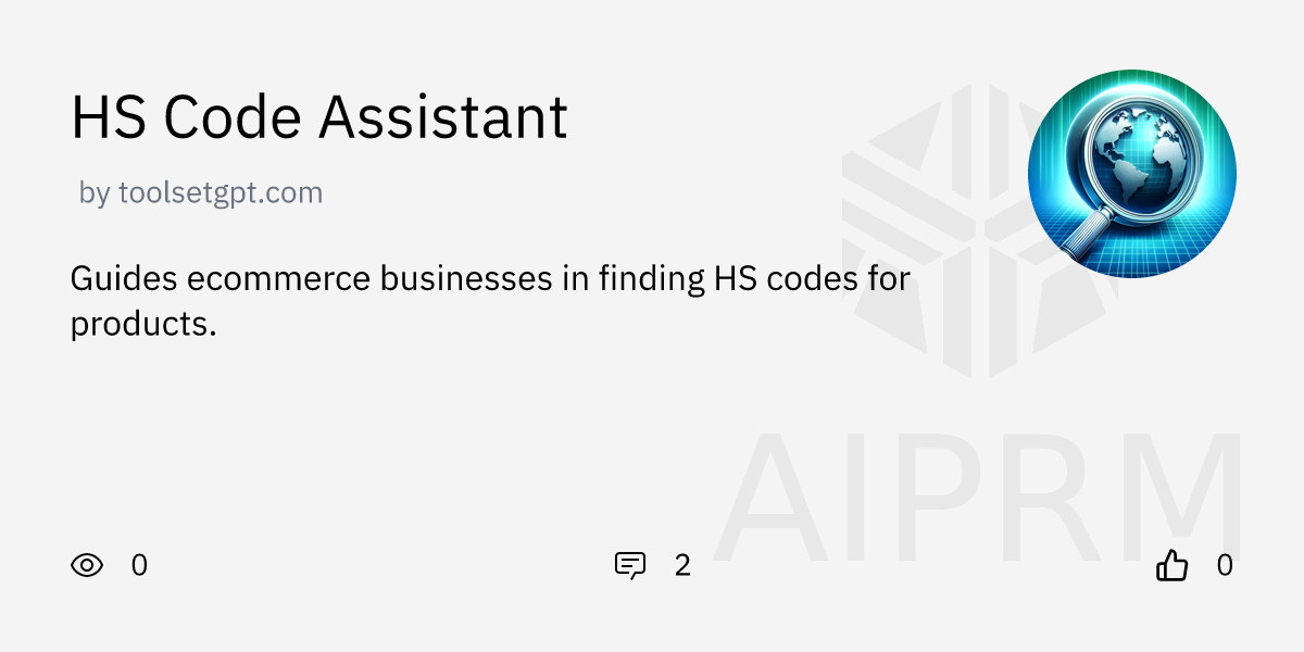 GPT "HS Code Assistant" by "toolsetgpt.com" - AIPRM for ChatGPT