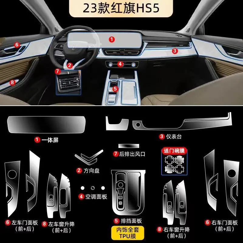 TPU-for-HongQi-HS5-2019-2023-Transparent-Protect-Film-Car-Interior ...