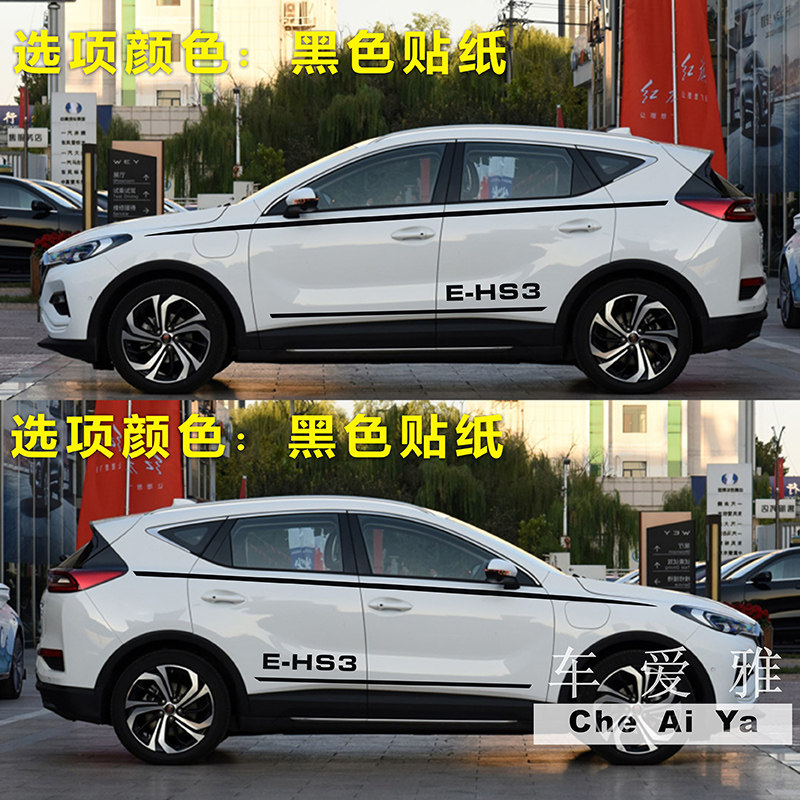 红旗E-HS3车身贴创意个性汽车装饰彩条腰线贴红旗HS5改装车门车贴_虎窝淘