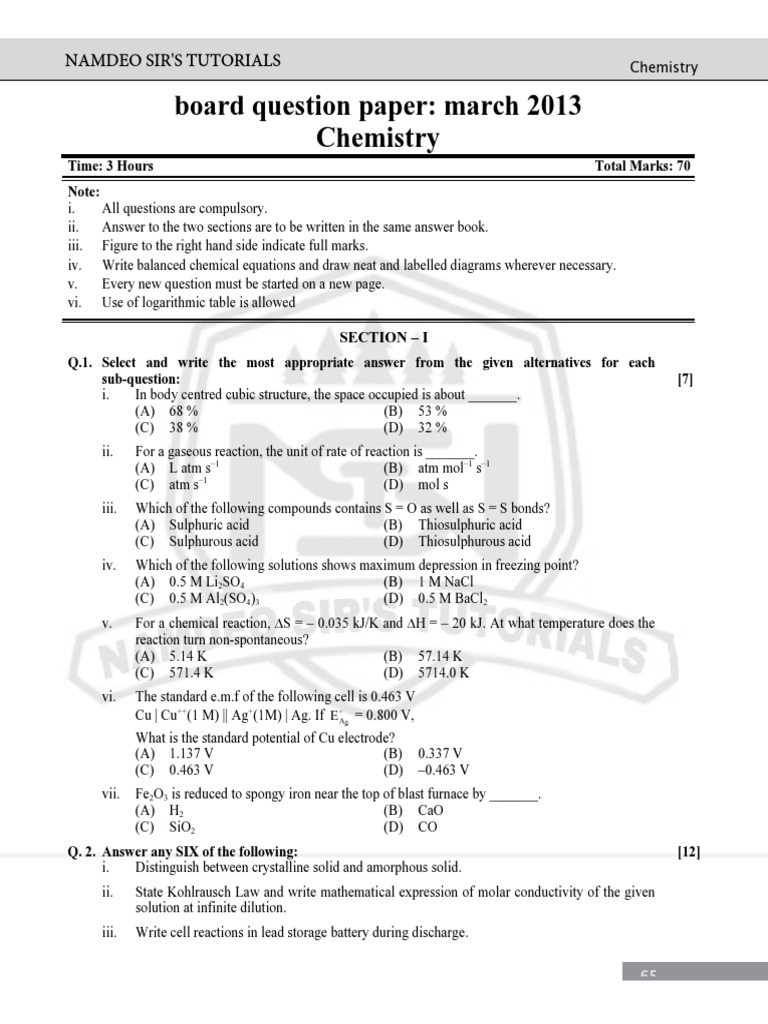 Chemistry Chapter Wise Weightage HSC Board #hsc #hscchemistry #shorts ...