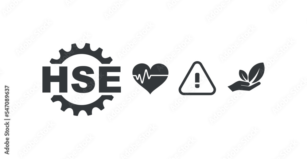 HSE (Health, Safety and Environment) illustration concept in black ...