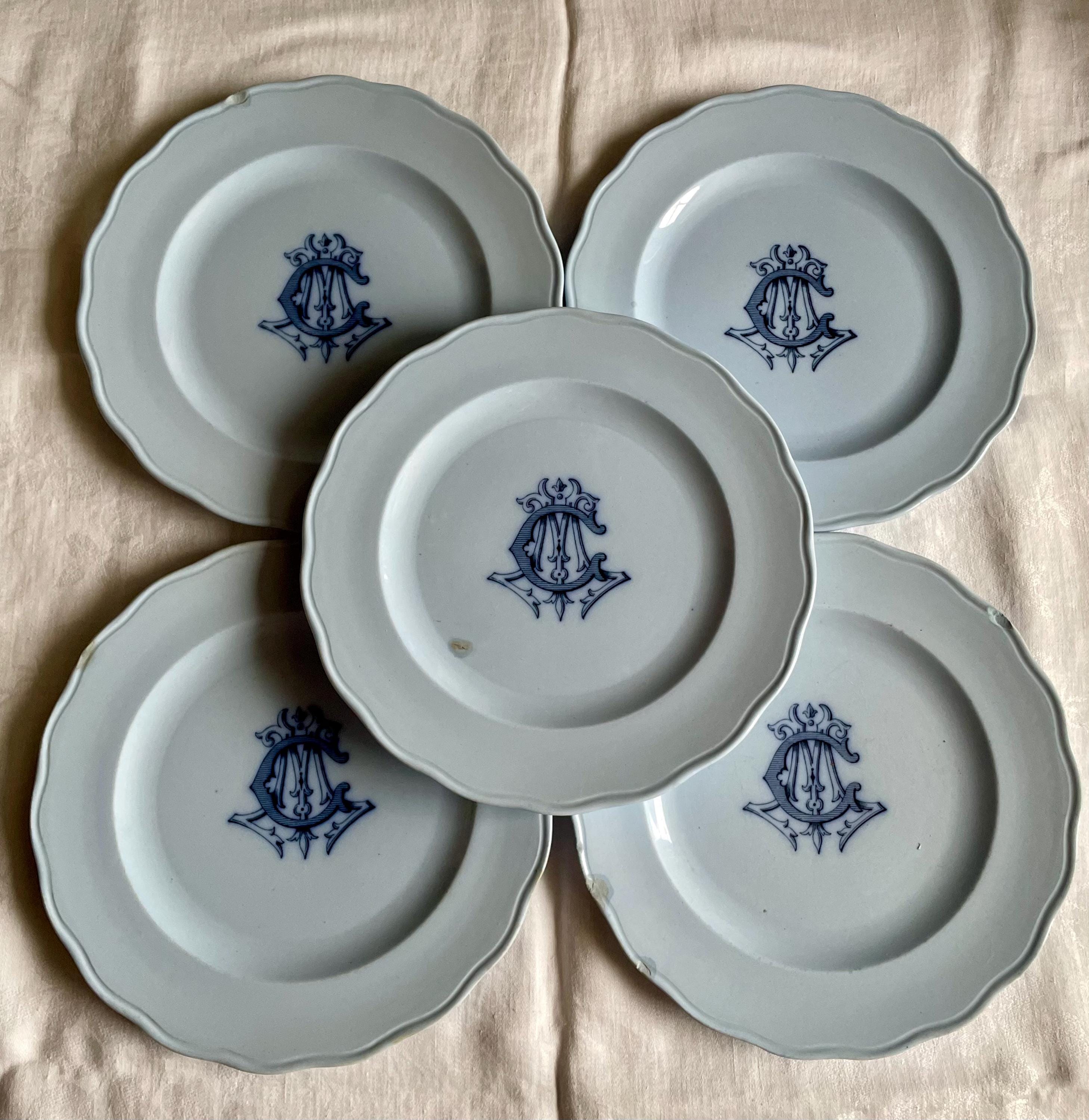 HTF Antique Blue Ironstone Monogrammed Dinner Plates - Etsy