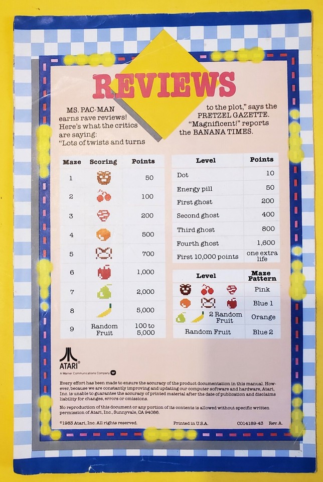 Ms. Pac-Man Atari 5200 Video Game Instructions Sheet Only 1983 HTF VTG ...