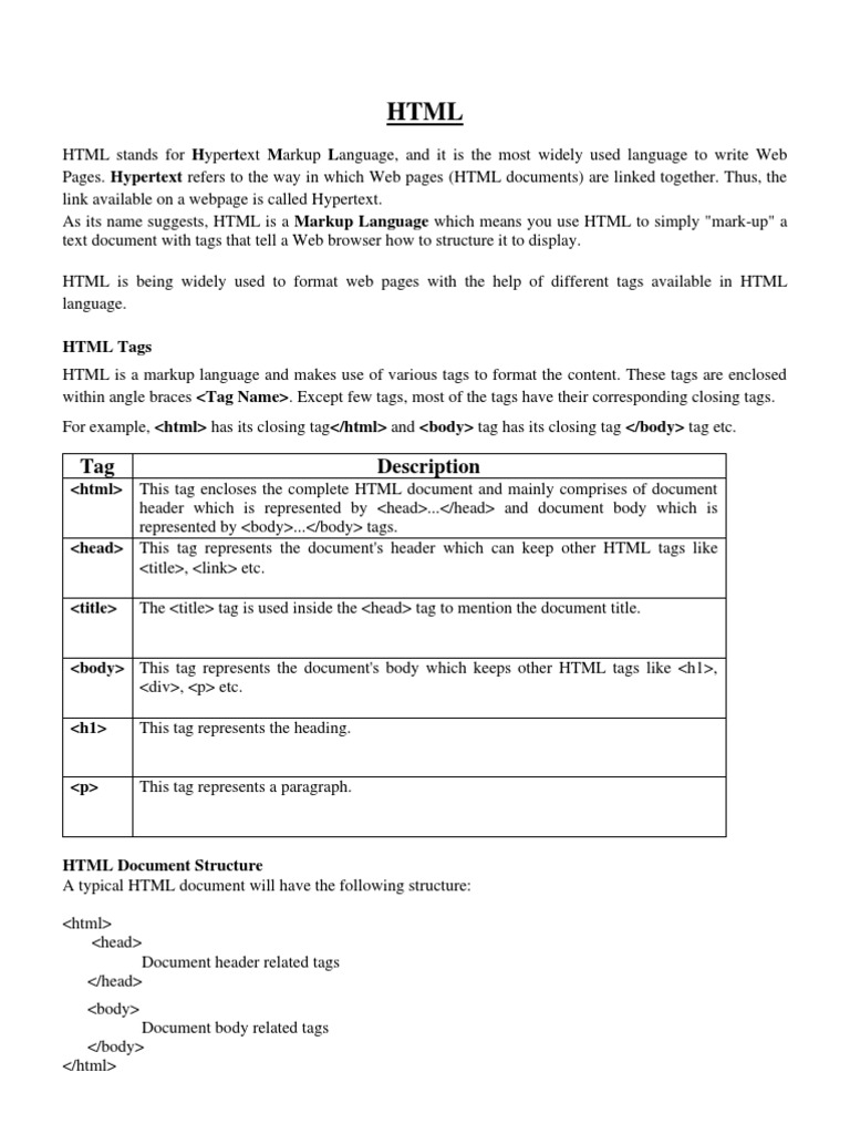 HTML and it's basic structure Handwritten Notes PDF This notes will ...
