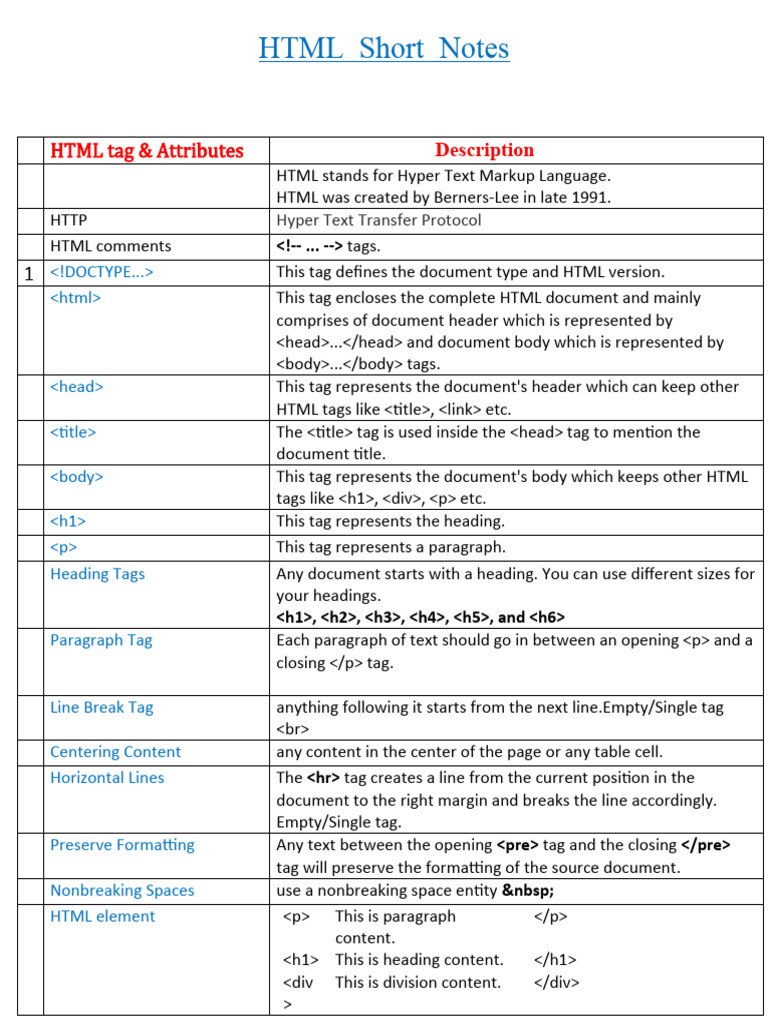 Complete HTML Notes - HTML NOTES - HTML DOCUMENT STRUCTURE HTML ...