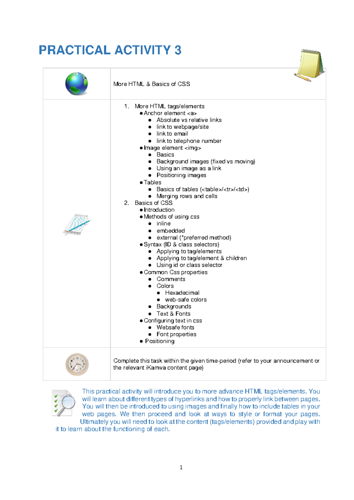 Practical 3 - practice with it - PRACTICAL ACTIVITY 3 More HTML ...