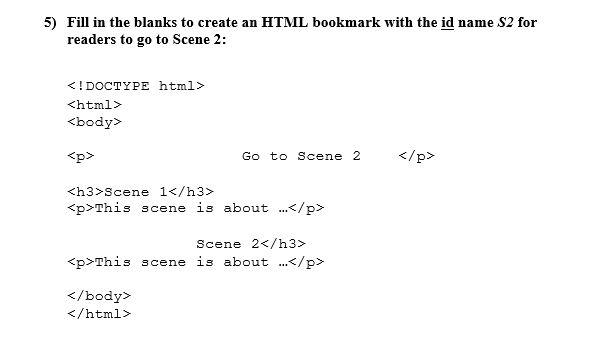 Solved 5) Fill in the blanks to create an HTML bookmark with | Chegg.com