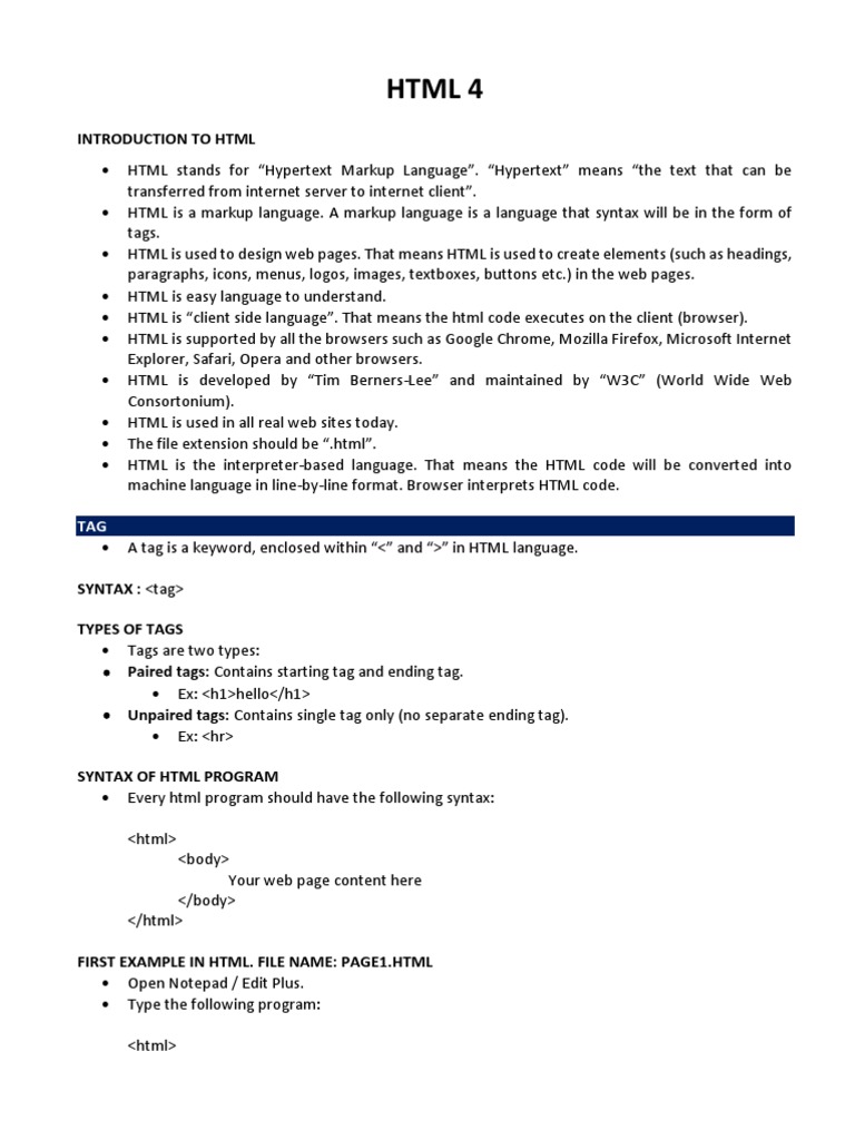 Ch-4 HTML- Introduction.pdf - Computer - Notes - Teachmint