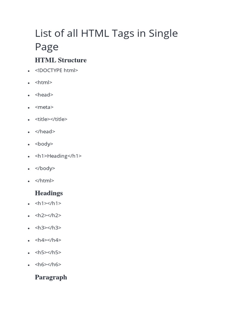 Html Tags Download Pdf at Vicky Jorgenson blog