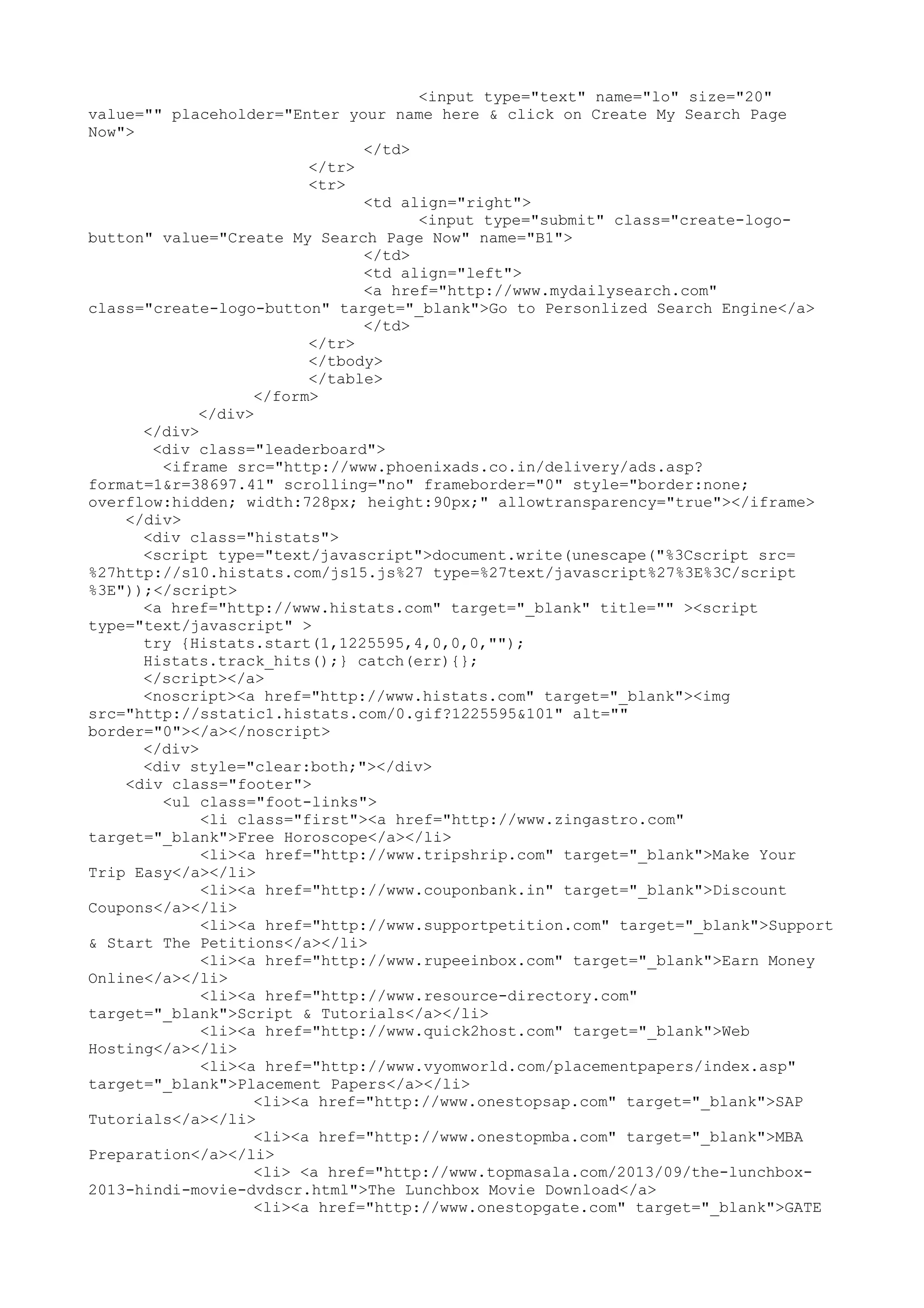 google homepage html code