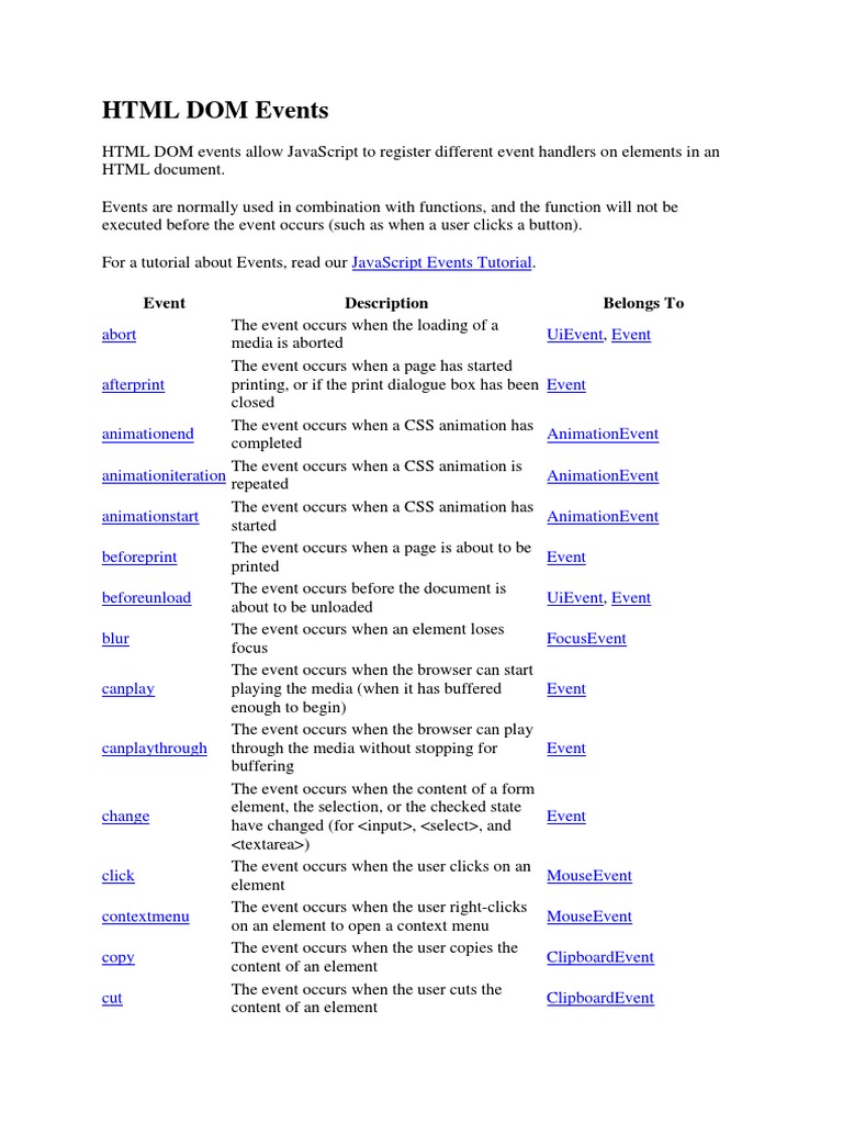 HTML DOM Events: Event Description Belongs To | PDF | Cascading Style ...